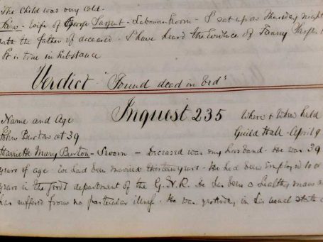 A volume of inquest witness statements it provides accounts, sometimes in gruesome detail, of deaths in the Doncaster area during the 19th century.